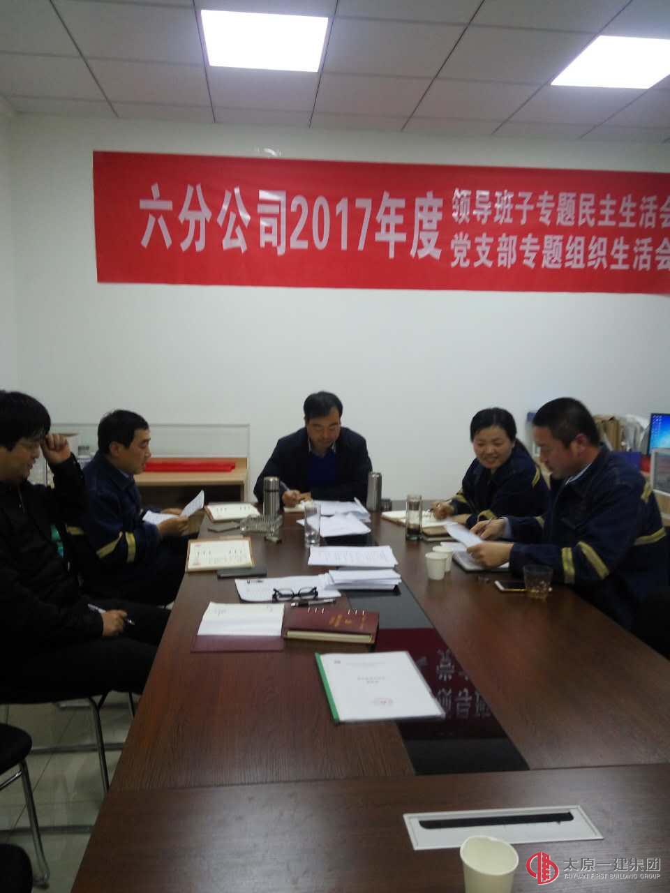 按照集團(tuán)公司黨委關(guān)于召開《2017年度領(lǐng)導(dǎo)班子專題民主生活會、黨支部專題組織生活會方案》的要求,六分公司于2018年1月26日下午在機(jī)關(guān)會議室召開2017年度領(lǐng)導(dǎo)班子專題民主生活會和黨支部專題組織生活會,領(lǐng)導(dǎo)班子成員及全體黨員參加了會議,黨支部書記、經(jīng)理薛軍主持會議。
