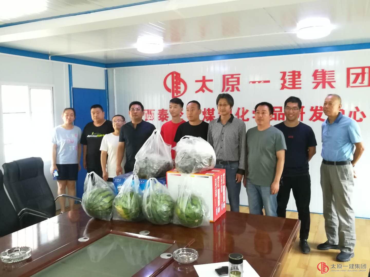 6月15日上午,在端午節(jié)即將來(lái)臨之際,二分公司黨支部書(shū)記孫慶福、經(jīng)理劉海飛帶著粽子、西瓜、豬肉、飲料等慰問(wèn)品到泰倫特項(xiàng)目部看望慰問(wèn)了奮戰(zhàn)在一線的項(xiàng)目部管理人員和農(nóng)民工朋友,在炎熱的夏季為他們送去了一絲清涼和濃濃的節(jié)日祝福。