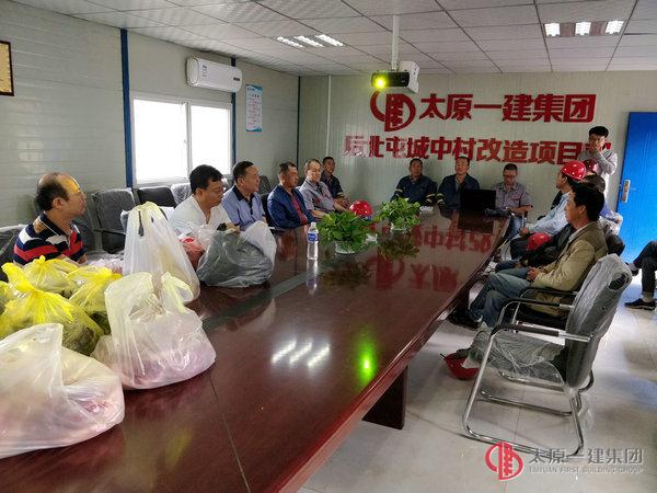 2018年6月17日上午,小雨。在端午節(jié)來(lái)臨之際,七分公司經(jīng)理郭建新、副經(jīng)理弓馬威、鄭江峰一行到分公司后北屯城中村改造項(xiàng)目,慰問(wèn)、鼓舞日夜奮戰(zhàn)在一線的職工和勞務(wù)工人,送上節(jié)日的祝福同時(shí)送上粽子、豬肉等慰問(wèn)品!郭建新在慰問(wèn)時(shí)說(shuō)道,施工一線人員的幸福就是安全,只有項(xiàng)目部安全生產(chǎn)得以保障,職工們才能好好工作,好好生活。項(xiàng)目部管理人員一定要同勞務(wù)人員團(tuán)結(jié)在一起,凝聚戰(zhàn)斗力,主動(dòng)發(fā)揮安全管理能動(dòng)性,在安全生產(chǎn)月期間扎扎實(shí)實(shí)將安全工作開(kāi)展好、落實(shí)好。分公司副經(jīng)理弓馬威、鄭江峰分別發(fā)表慰問(wèn)講話,鼓勵(lì)大伙同心協(xié)力、加油干!項(xiàng)目經(jīng)理武志文,勞務(wù)隊(duì)代表紛紛表示一定在保證安全生產(chǎn)的前提下,努力將質(zhì)量、進(jìn)度控制好,趕上去,用實(shí)際行動(dòng)回饋分公司的關(guān)懷。