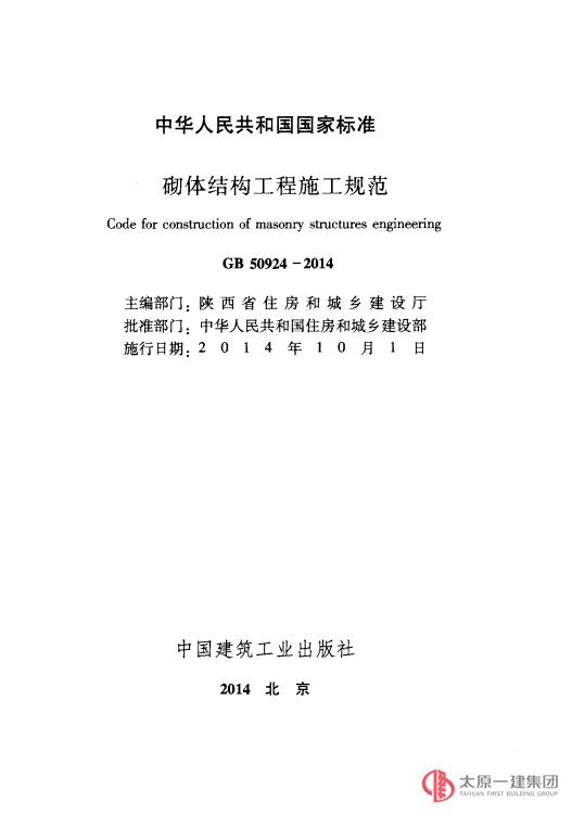 砌體結(jié)構(gòu)工程施工規(guī)范 GB50924-2014