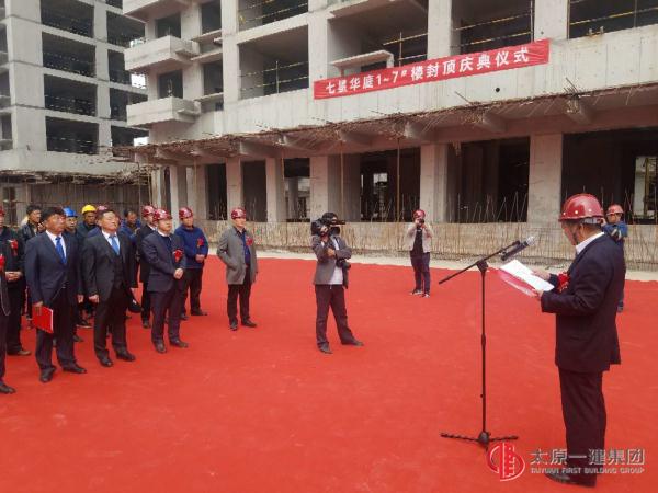2018年10月17日上午,太原一建集團項目工程管理處承建的鄉(xiāng)寧縣三和晉泰房地產(chǎn)公司七星華庭項目舉行了隆重的主體結(jié)構(gòu)封頂儀式,該項目為剪力墻結(jié)構(gòu)7棟小高層住宅樓,總建筑面積為57611.9m2。項目建設(shè)單位和參建各方代表參加了本次活動。