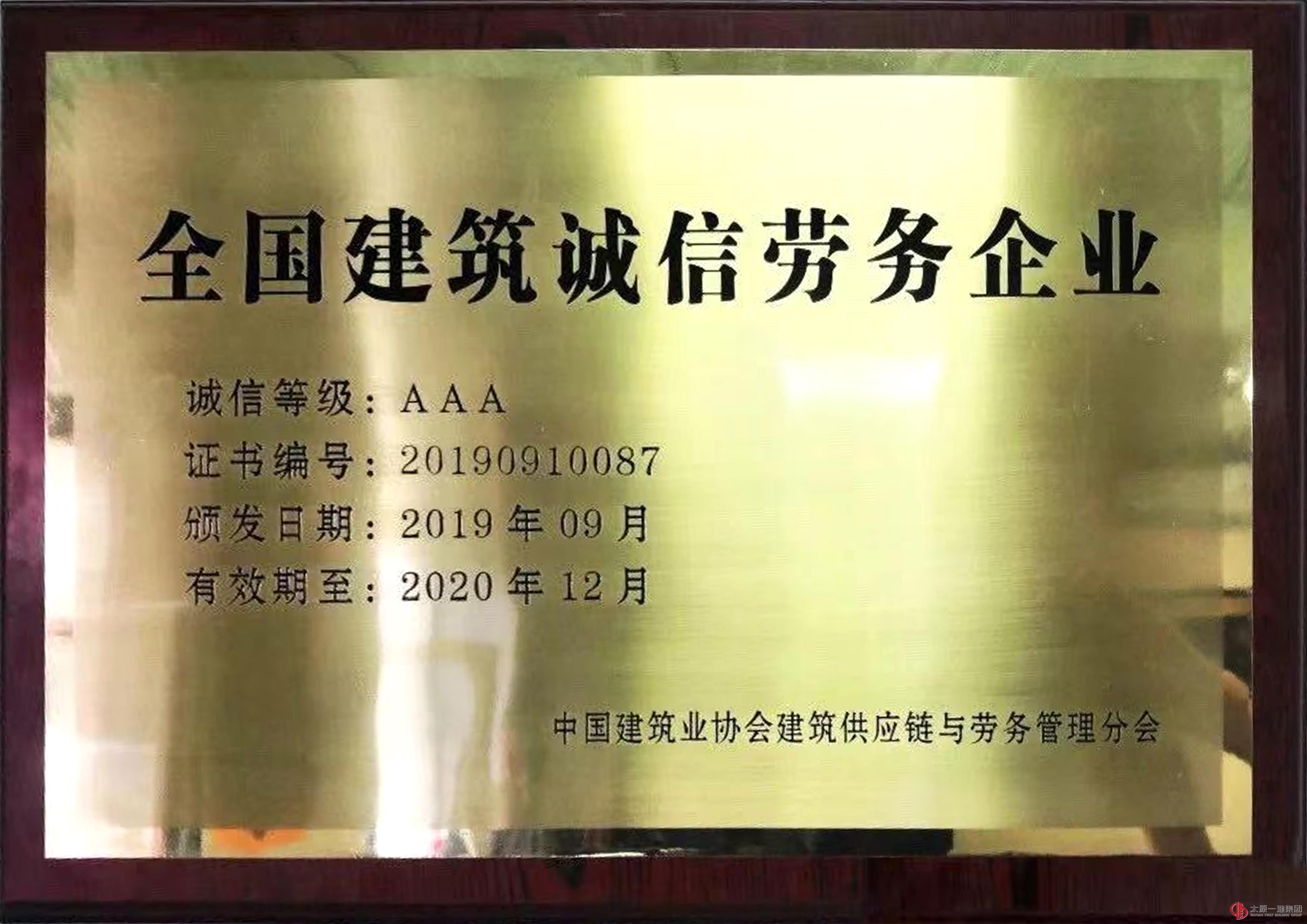 “AAA級全國建筑業(yè)誠信勞務(wù)企業(yè)”是我國建筑勞務(wù)企業(yè)最高誠信等級榮譽(yù)。該榮譽(yù)的獲得是易通勞務(wù)公司多年來誠信經(jīng)營積累的無形資產(chǎn),標(biāo)志著易通勞務(wù)在誠信履約、客戶信任、社會責(zé)任等各方面均得到社會和市場的認(rèn)可。