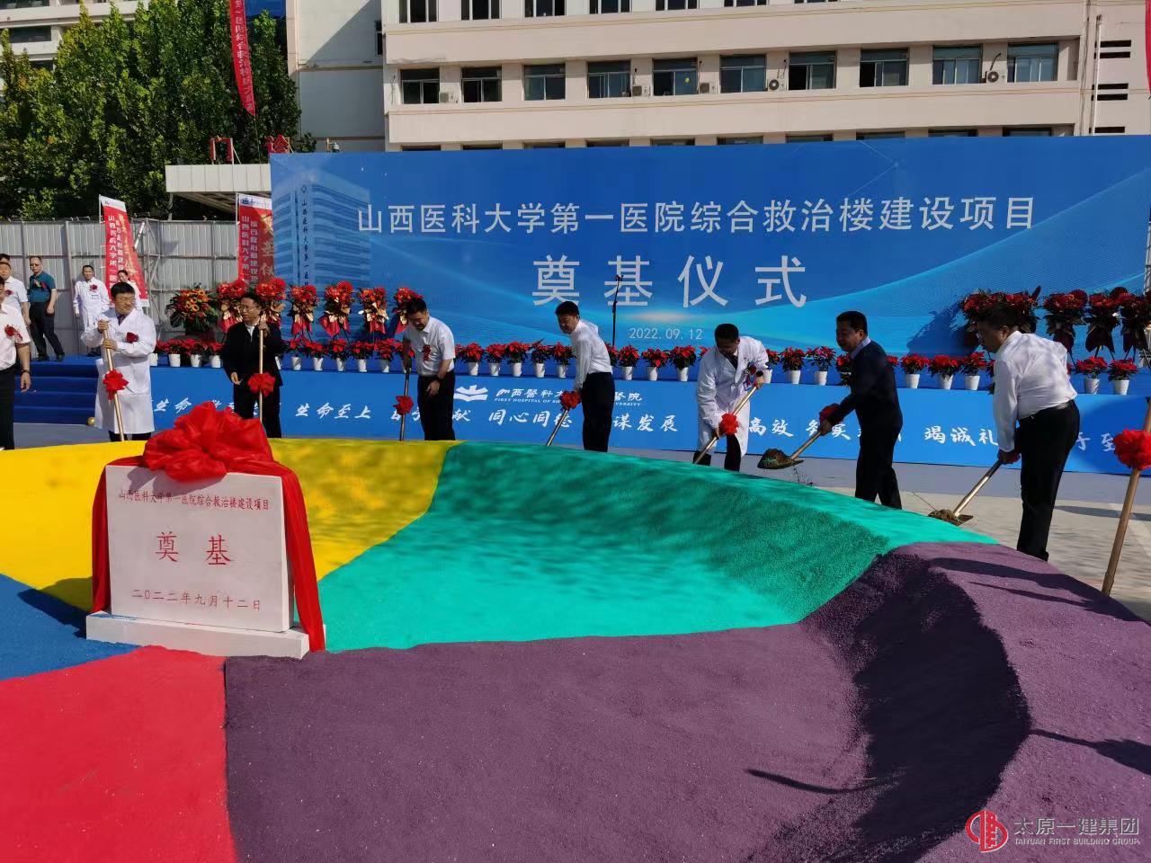 山西省衛(wèi)健委副主任張波宣布山西醫(yī)科大學第一醫(yī)院綜合救治樓建設(shè)項目于2022年9月12日正式奠基開工建設(shè)!開工奠基儀式一片熱烈氛圍,各位領(lǐng)導(dǎo)同擎金鍬,揚土培基。