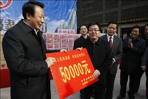 王貴聰董事長代表全省的建設者,從王君省長手中接過慰問品,積極表態(tài)要更加努力工作回報領導關心、回報社會的關愛。