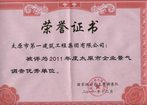 集團公司榮獲2011年度太原市企業(yè)景氣調(diào)查優(yōu)秀單位