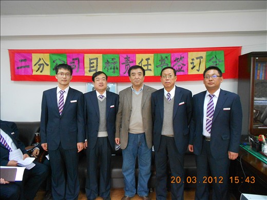 3月20日下午,二分公司召開全體管理人員目標責任書簽訂會。會議邀請了集團公司董事長、黨委書記、總經(jīng)理王貴聰及副總經(jīng)理司中謙參加。由副經(jīng)理崔曉軍主持。會議主要議程:一、首先播放二分公司近年來創(chuàng)新發(fā)展紀實片,展現(xiàn)了二分公司生產(chǎn)經(jīng)營取得的優(yōu)異成績和積極向上的精神面貌。二、副經(jīng)理薛軍宣讀了項目管理目標責任書、安全生產(chǎn)目標責任書、質(zhì)量管理目標責任書、消防安全目標責任書。經(jīng)理孫慶福與各項目經(jīng)理及安全員簽訂了目標責任書。三、分公司副經(jīng)理、主任工程師劉海飛宣布2011年受集團公司表彰的項目部名單和分公司嘉獎的決定。王董事長為獲得企業(yè)優(yōu)良工程和企業(yè)安全文明標準化合格工地的太原新建雷達站項目部頒獎,集團公司獎勵8000元,分公司嘉獎35000元。司總經(jīng)理為獲得太原市安全文明標準化工地的太原市慈善學(xué)校第二標段頒獎,集團公司獎勵5000元,分公司嘉獎5000元。孫經(jīng)理為榮獲市級QC成果的濱河西路電力排管張鑒QC小組頒獎,集團公司獎勵1000元,分公司嘉獎1000元。四、經(jīng)理孫慶福根據(jù)集團公司“2.25”會議、“3.11”會議及董事長王貴聰2012年安全講話的內(nèi)容,向大家做出了重要指示,明確了分公司2012年的奮斗目標,將安全生產(chǎn)作為首要工作來抓,同時對全年工作做了周密的安排。五、副總經(jīng)理司中謙對二分公司的紀實片提出了寶貴的意見。提出兩項要求:1、力爭完成2012年利潤指標;2、重點做好南內(nèi)環(huán)東延地產(chǎn)開發(fā)工作。貫徹落實王董事長提出的六個“樹立”:1、樹立積極向上的風氣;2、樹立對工作認真的作風;3、樹立學(xué)習(xí)創(chuàng)新的風氣;4、樹立團結(jié)協(xié)作的風氣;5、樹立友善助人的風氣;6、樹立專心干事的風氣。最后,董事長王貴聰肯定了二分公司2011年取得的成績,作為集團公司的模范單位,要起帶頭,走在前,做表率,用實際行動踐行這一榮譽。在今后工作中,確保生產(chǎn)安全,財務(wù)工作安全。全面快速提升二分公司的社會形象,加強施工現(xiàn)場和自身管理。并提出二分公司經(jīng)營發(fā)展方向:1、鞏固承攬市政工程的市場;2、下大力氣開拓保障性住房的市場。